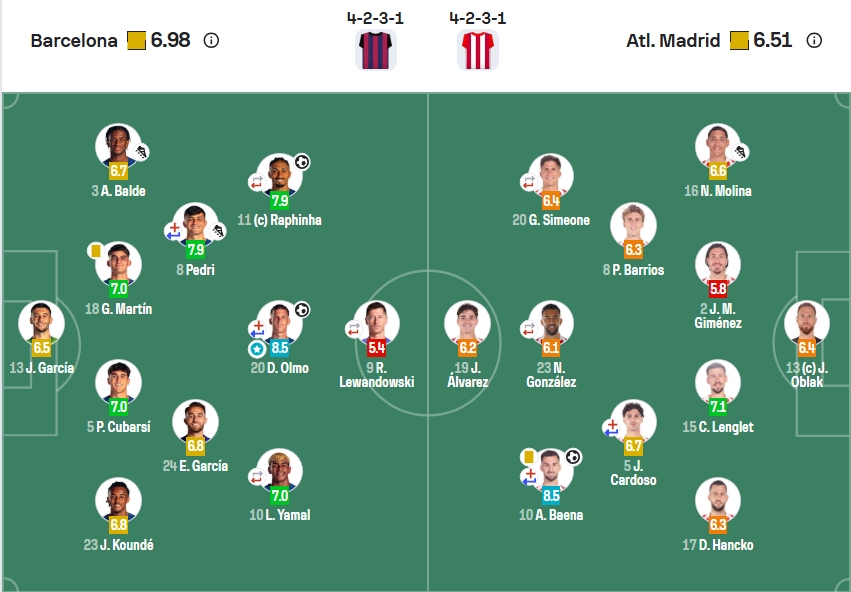 El Barcelona se impuso al Atlético 3-1 en el partido adelantado de la jornada 19. A continuación repasamos las notas de cada jugador en SofaScore, analizando las estadísticas principales por las que obtuvieron esas valoraciones.